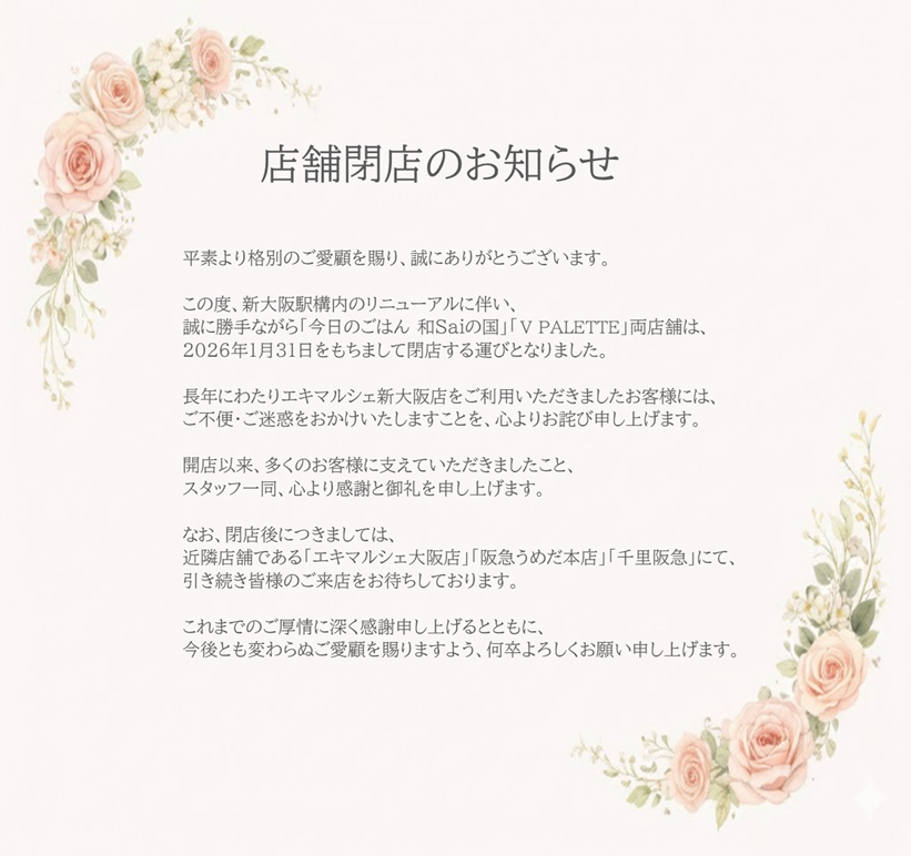 店舗閉店に関するお知らせ